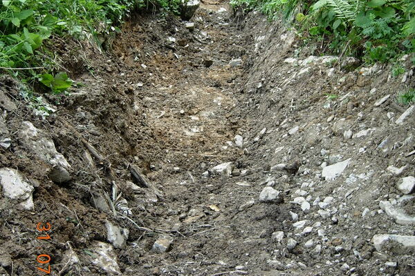 31.07. Bachbett des „Foambaches“ wird im Bereich der Verklausungen ausgebaggert.