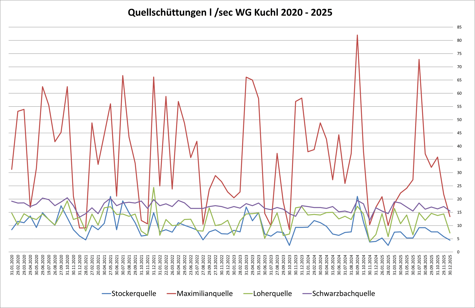 Die Maximilian- und Stockerquelle liegen an der westlichen Seite des Salzachtales, oberhalb der Landwirtschaft „Stockach“ am Hangfuß des „Wenger Waldes“, welcher sich zum Roßfeld erstreckt. Die beiden Quellen wurden in Quellstollen gefasst, welche mit Beton ausgekleidet sind und von dessen Querschlag das Wasser aus den Schichtflächen der hier anstehenden Oberalmer Schichten in Halbschalen abgeleitet wird. Das Wasser dieser Quellen entspringt als Schichtquelle dem geklüfteten und teilverkarsteten Oberalmer Kalk, dessen flach aus dem Hang fallenden Schichtflächen gut wasserduchlässig sind und die gute Quellschüttung bedingen.